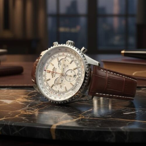 Be the first to review “Breitling Watch With a Silver Dial and Brown Leather Strap”