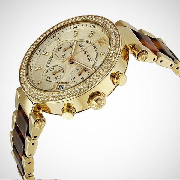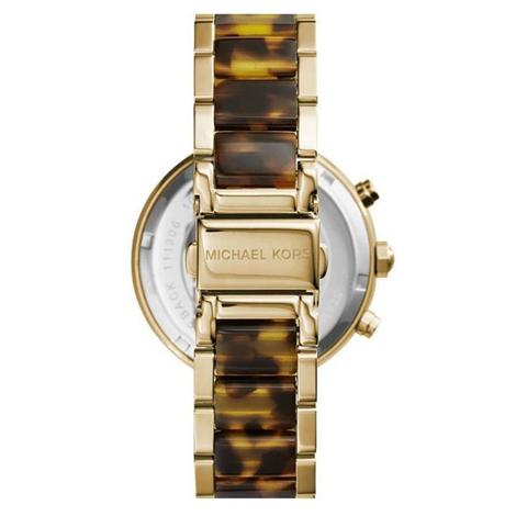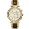 | Strap material – Yellow gold PVD plated stainless steel and tortoiseshell acetate |