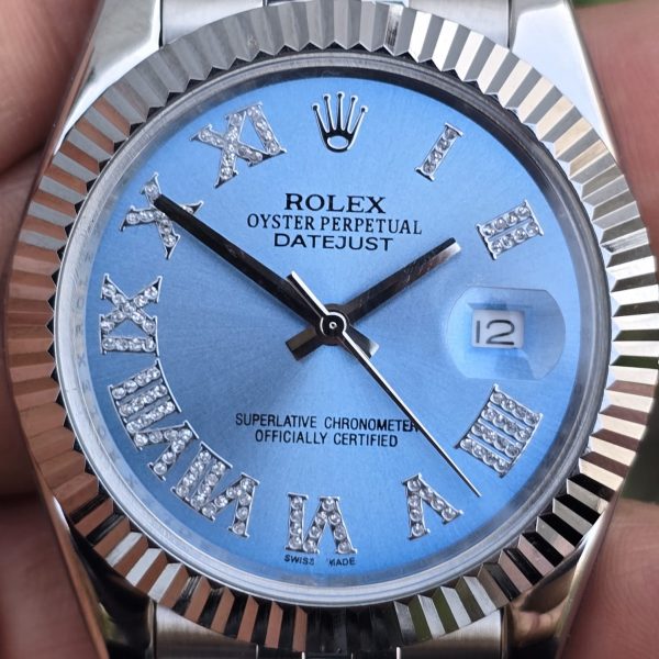 Rolex Datejust Silver-Blue Diamond Roman Figure